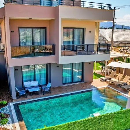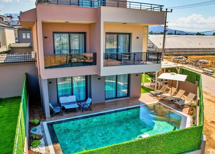 Fethiye 4 Bedroom Villa - 9269设有游泳池,设施齐全的厨房以及4间卧室,俯瞰花园.